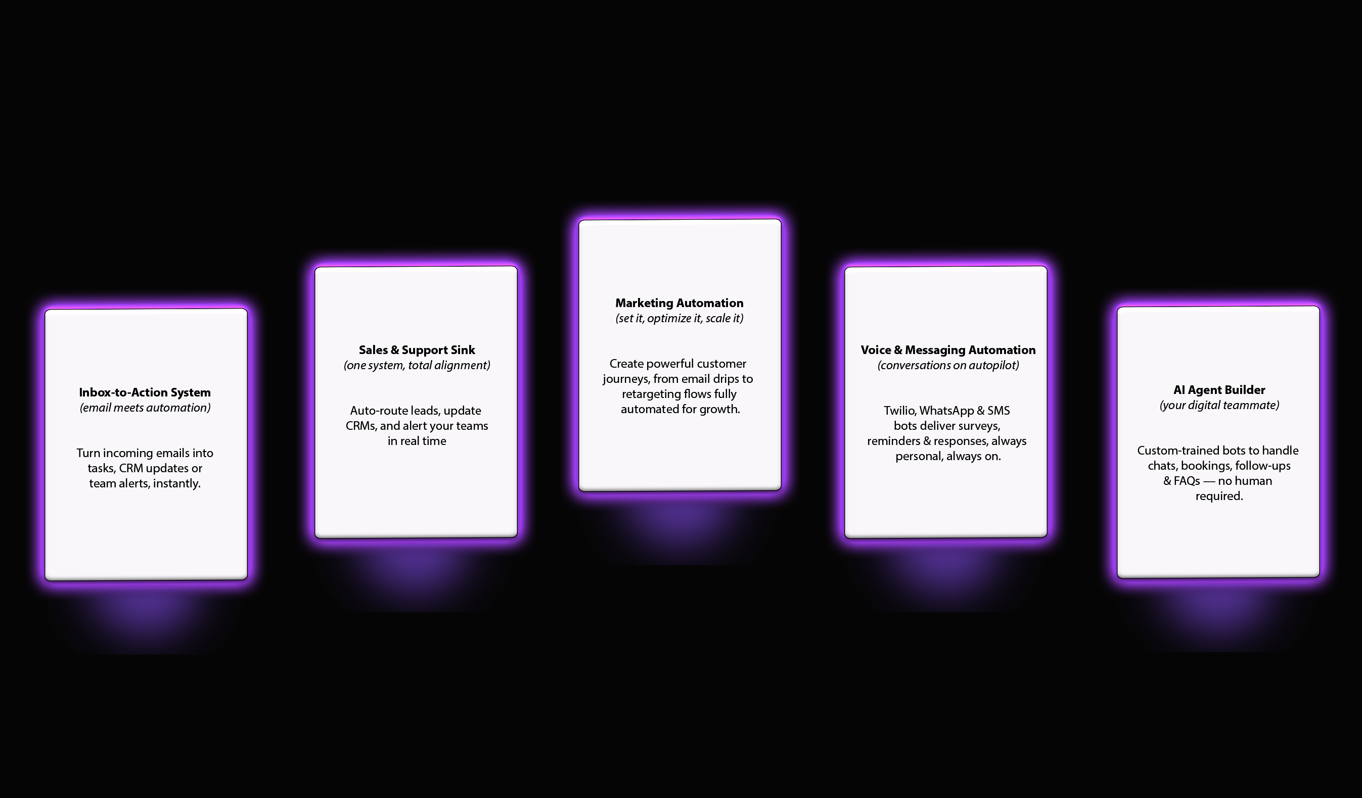 🧠 AI-Powered Workflows: Smart automation systems built with tools like Make, Zapier, and Twilio to act and adapt in real time.